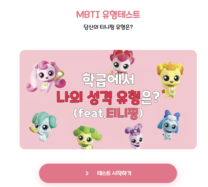| MZ식 핑도감 성격 테스트 MBTI 결과 | 티니핑 MBTI 테스트 결과 |